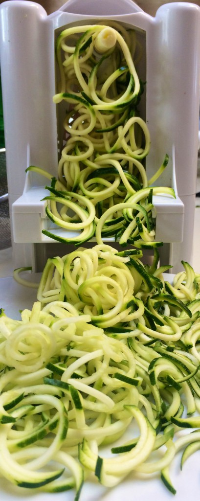 Zucchini “noodles” are a great gluten-free alternative to pasta. Or as a side dish, serve raw tossed with a dressing