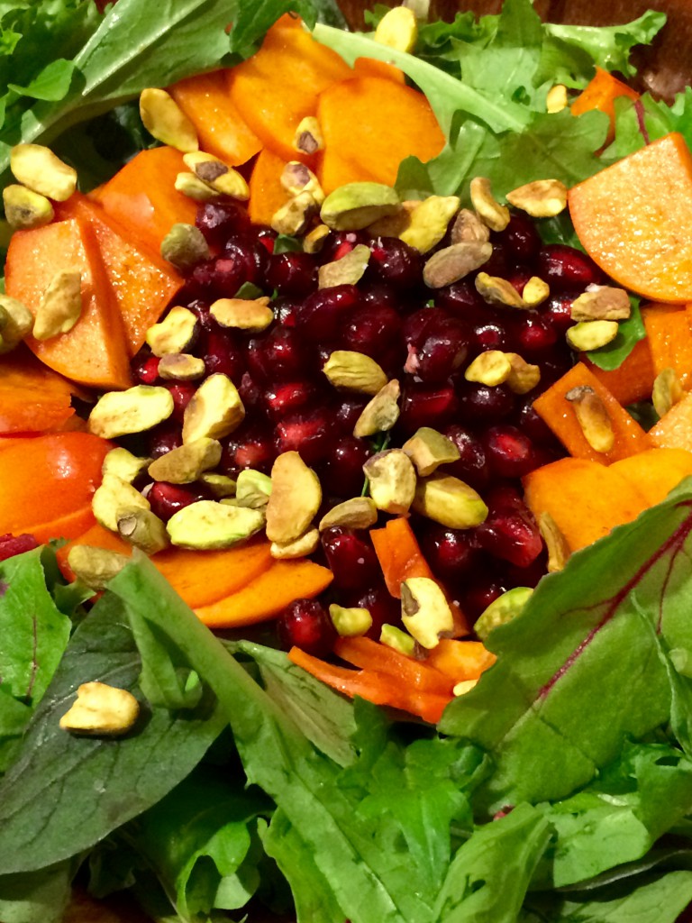 Sweet Tart Salad: Arugula, Pomegranate, Persimmon With Citrus Maple Dressing
